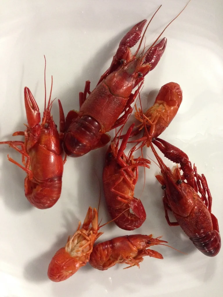Drie dagen later kregen we een appje: ‘er zitten er al zes in!’. Eenmaal aangekomen blijken er weer een aantal bij te zijn gekomen en ook weer verlaten, maar we hebben er in ieder geval drie. De boze rivierkreeften laten zich niet makkelijk uit de fuik in onze met Vinkeveens water gevulde emmer manoeuvreren, maar het lukt gelukkig toch. We gaan met de emmer naar huis en laten de diertjes daar stuk voor stuk met een schuimspaan in een pan met kokend water glijden. Dat is de manier waarop het dier het minst lijdt. Want ook al wilde hij ons aan zijn scharen rijgen als een ninja, we blijven natuurlijk respectvol.
